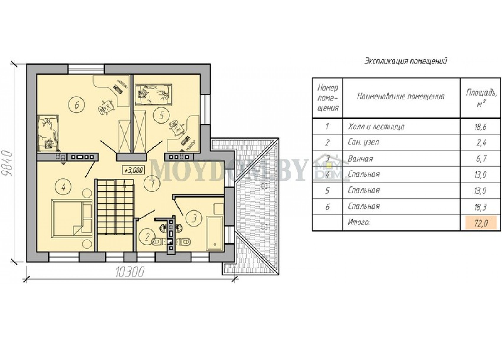 план второго этажа двухэтажного дома 10 на 10 три комнаты