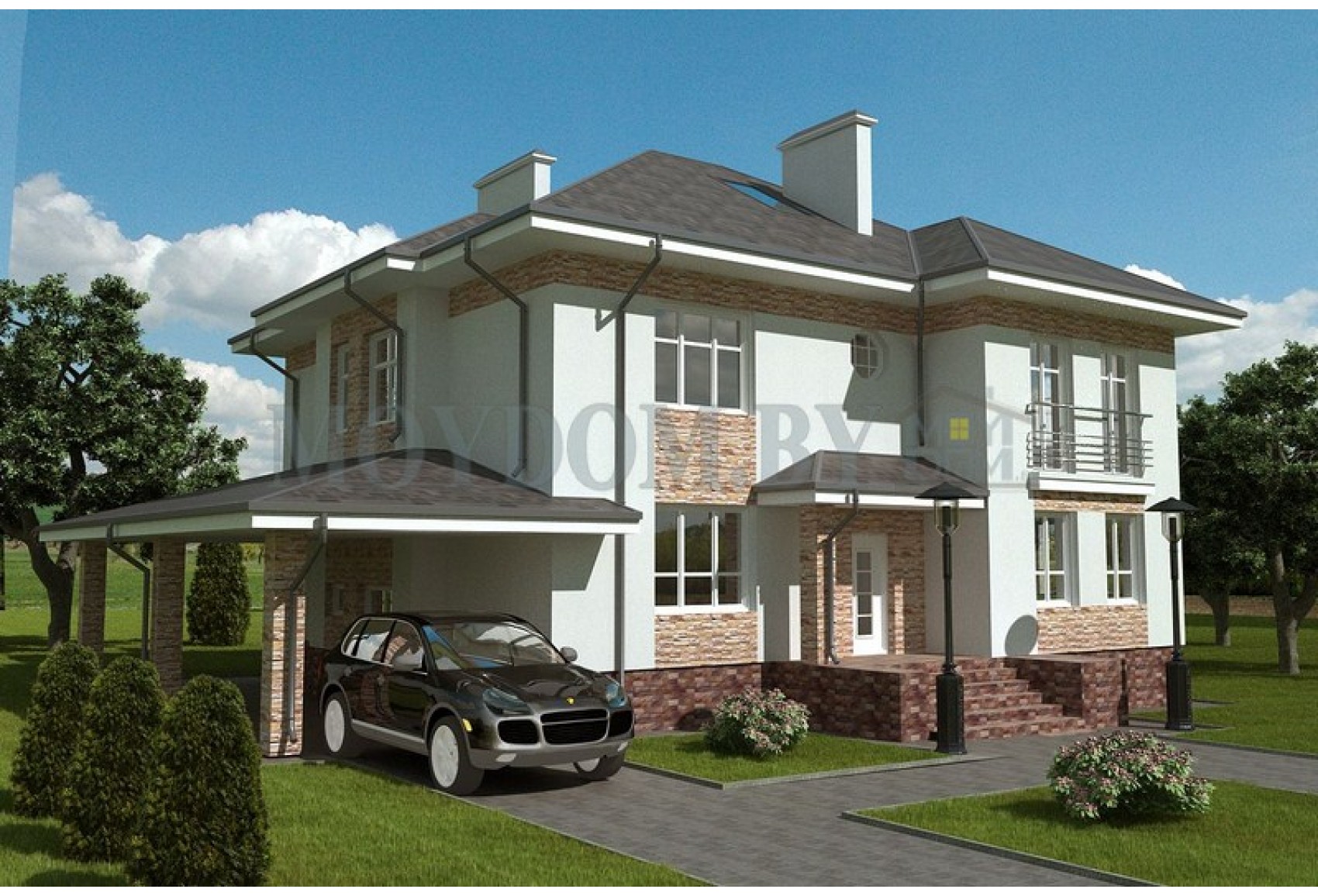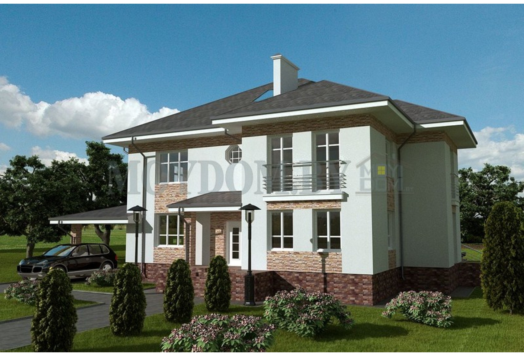Большой, удобный, красивый двухэтажный дом для большой семьи. Редкое сочетание внутреннего комфорта и внешней красоты – вот что представляет собой этот двухэтажный типовой проект дома, в котором спланированы также жилая мансардаи открытая солнцу терраса. Что немаловажно – это дом с пристроенным гаражом на две машины, которые не будут стоять под дождем и солнцем, а будут так же защищены, как и жители дома.