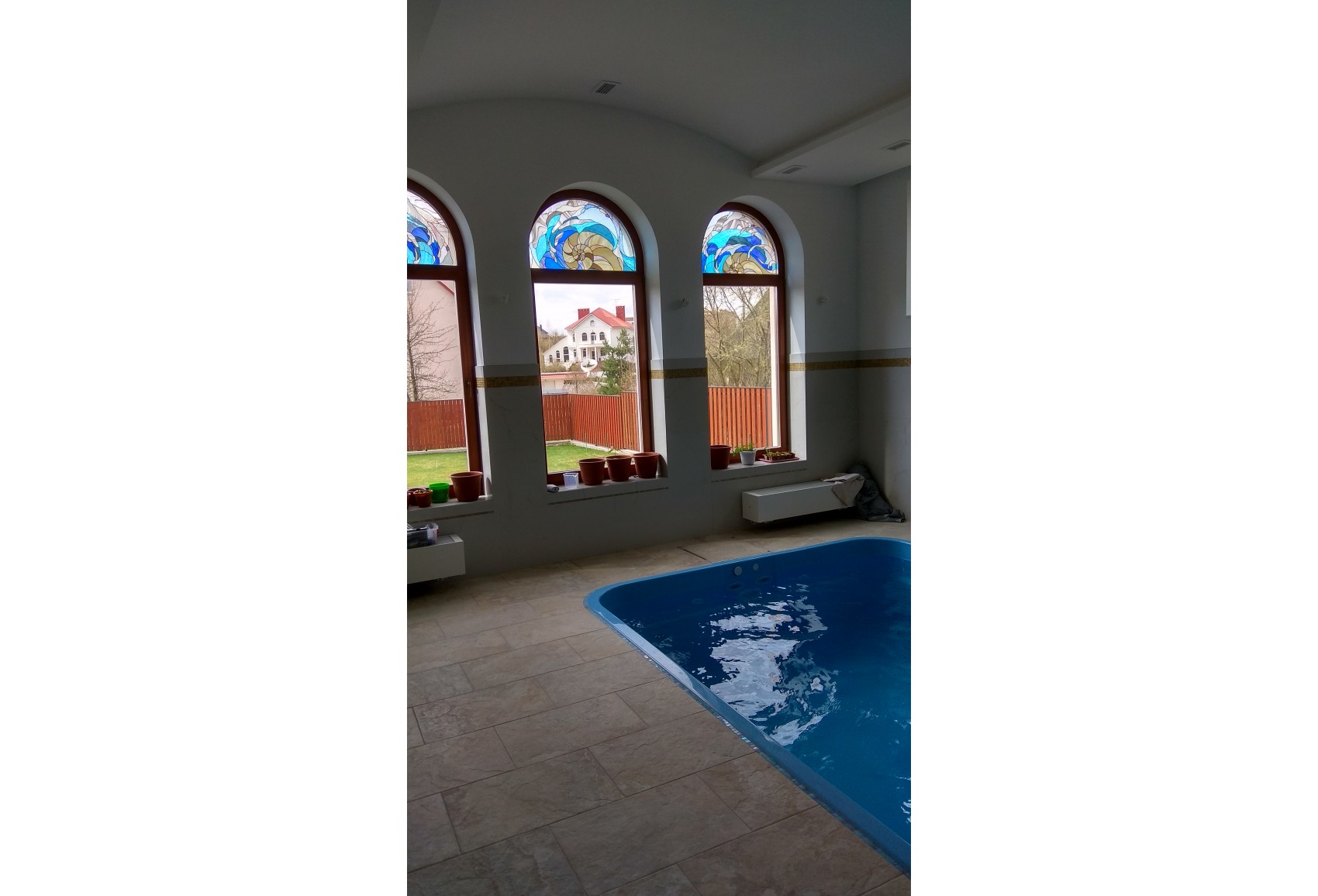 Проект двухэтажного дома в средиземноморском стиле с бассейном в доме