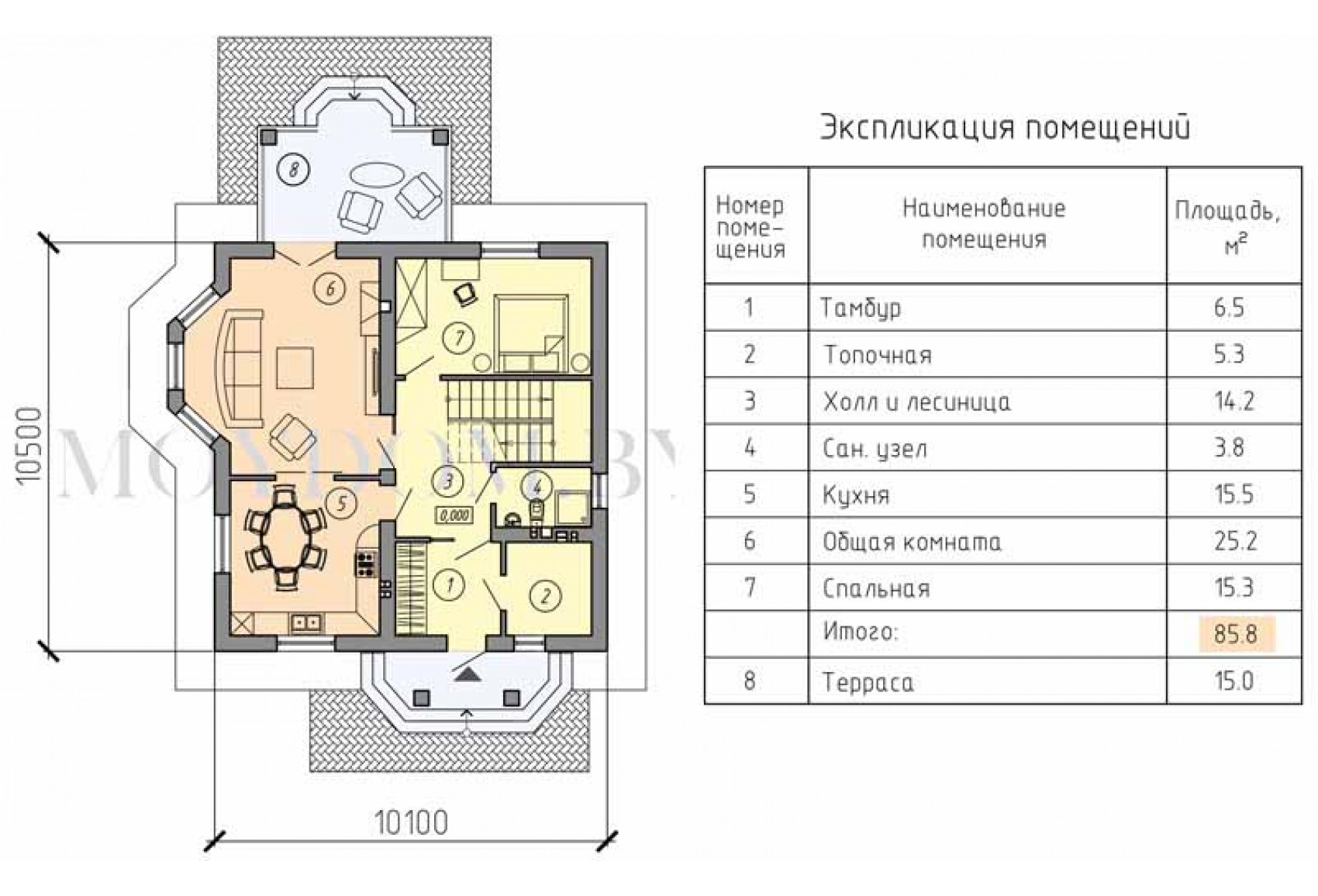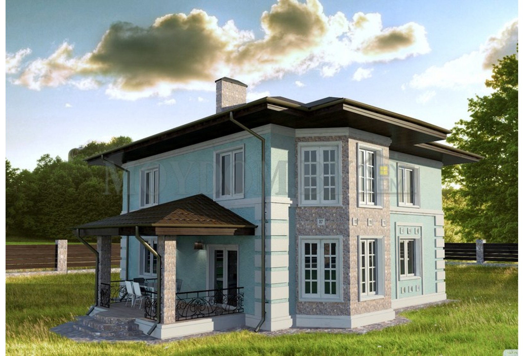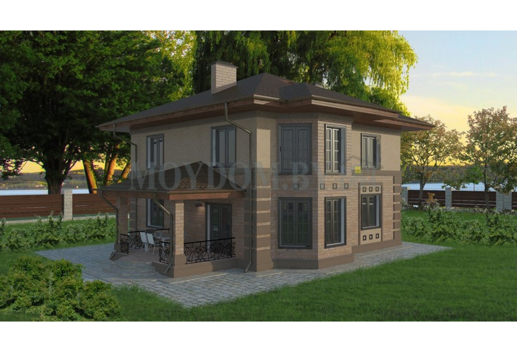 Этот проект дома очень практичный и наиболее полно отражающий реалии большинства современных загородных жителей. Удобство, удобство и еще раз удобство – вот что можно сказать про этот проект. Все в доме расположено компактно, разумно, практично. Первый этаж отдан под хозяйственные нужды и прием гостей, второй этаж - спокойная территория хозяев. Благодаря компактным размерам, дом занимает ограниченную территорию и подходит для небольших участков. При всей своей практичности дом выглядит довольно респектабельно.