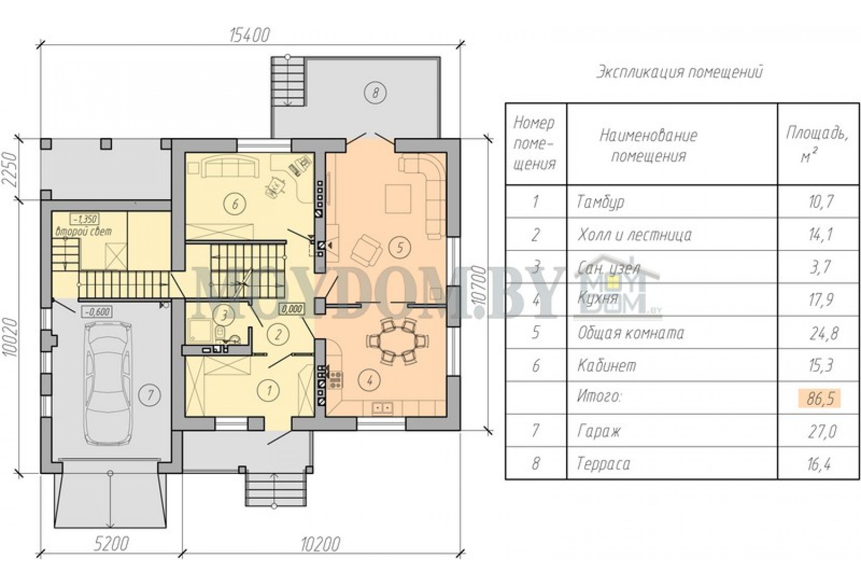 | Общая площадь, м.кв. | 172,8 дом + 27,0 гараж |