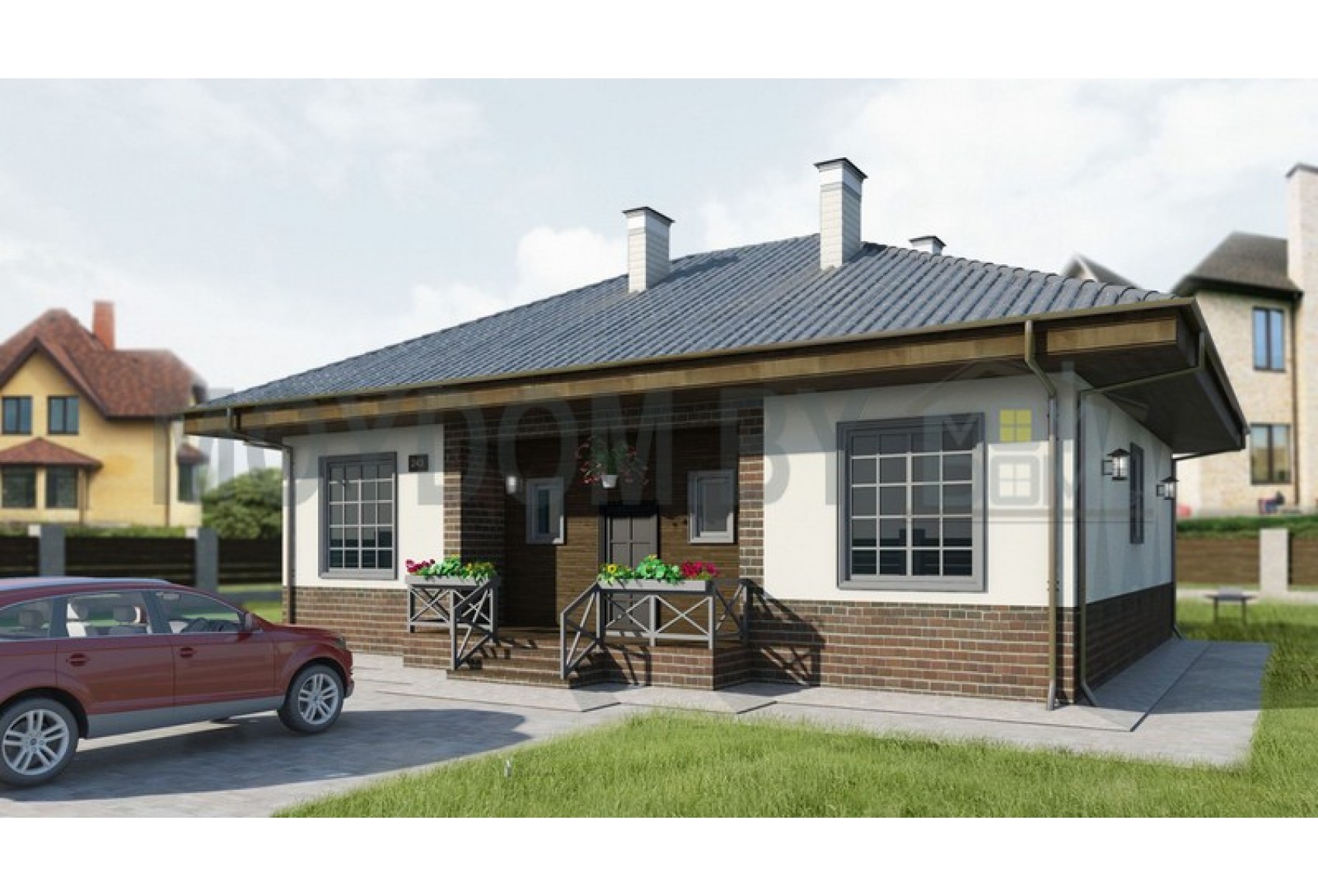 Проект одноэтажного дома из золотой серии проекта 243, которые пользуются постоянным спросом и интересом. Проект этого одноэтажного дома позволит вам за небольшие деньги построить свой собственный уютный дом. В доме есть все необходимое для комфортной жизни небольшой семьи: кухня-гостиная, 3 спальни, а также ванная, хозяйственные помещения. Из большой кухни-гостиной есть выход на уютную террасу. Очень много людей ждали уменьшенной копии 243-го проекта и вот, наконец, мы сделали такой проект дома. Следующая версия будет на основе этого проекта, только с гаражом и навесом на террасе.