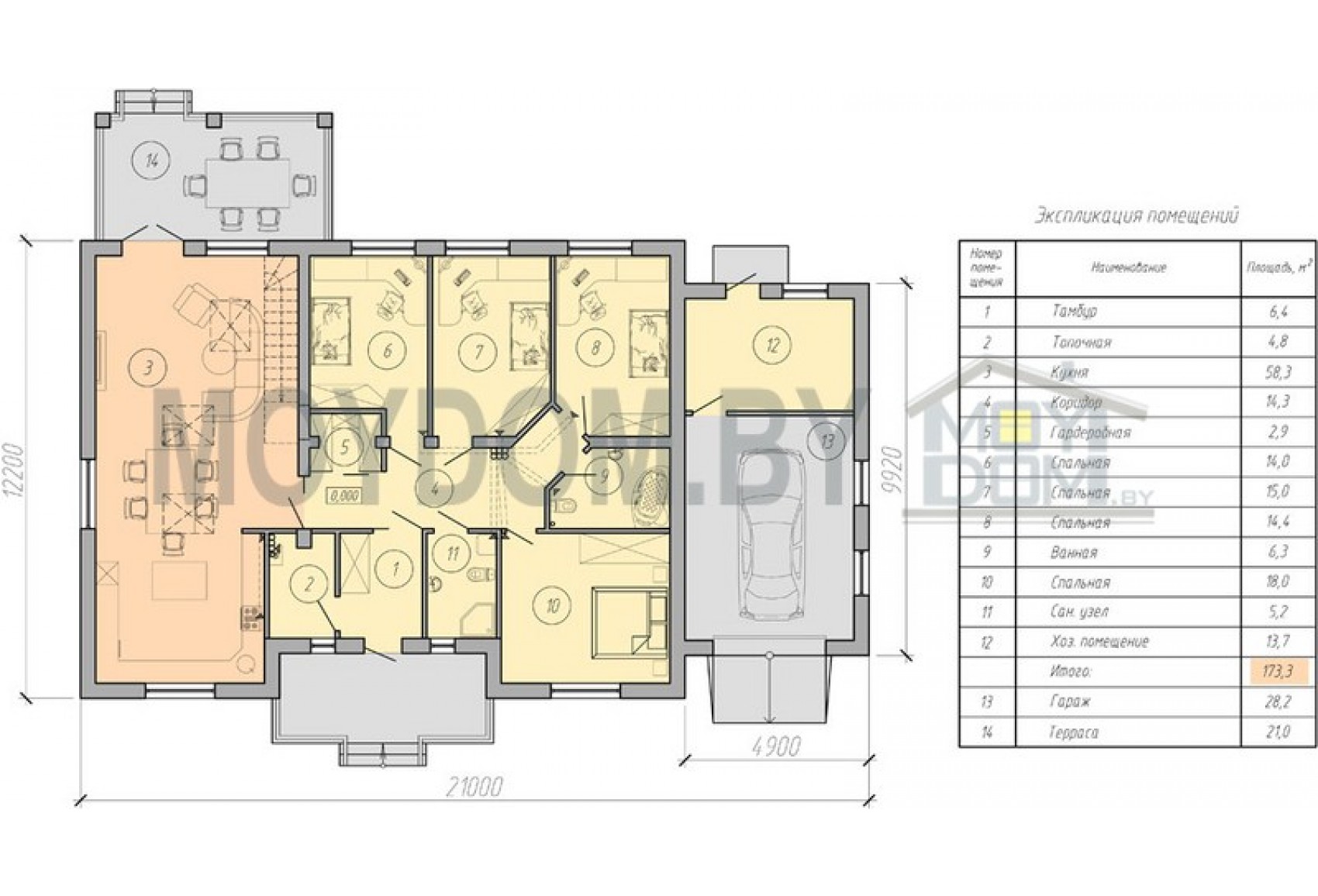 Общая площадь, м.кв. | 173,3 дом + 28,2 гараж |