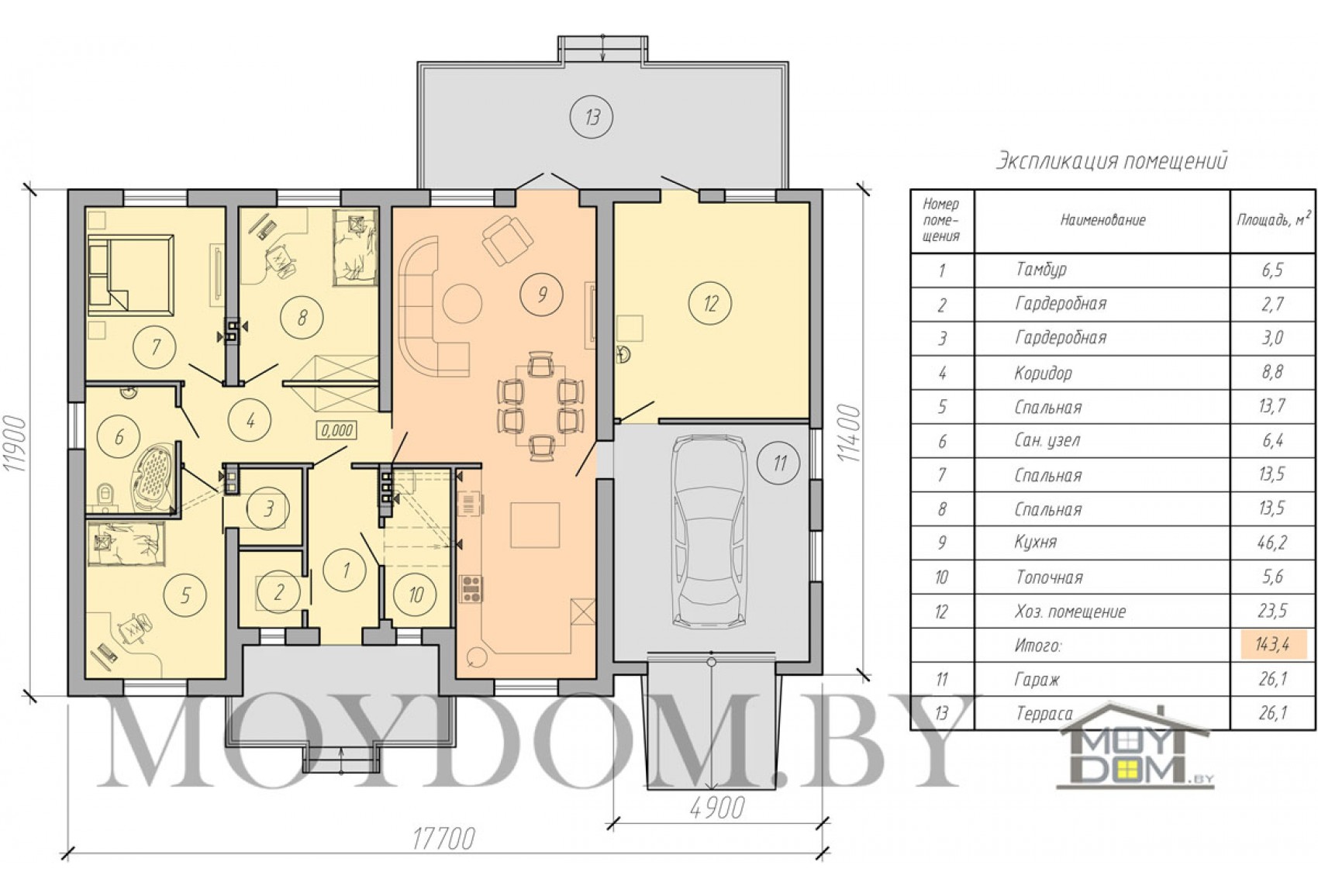 Общая площадь, м.кв. | 143,4 дом + 26,1 гараж |