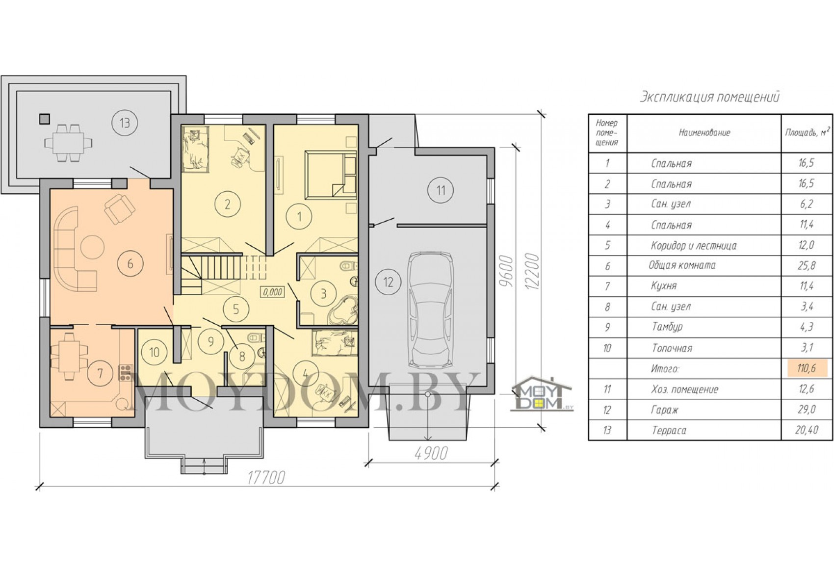 Общая площадь, м.кв. | 110,6 дом + 29,0 гараж |