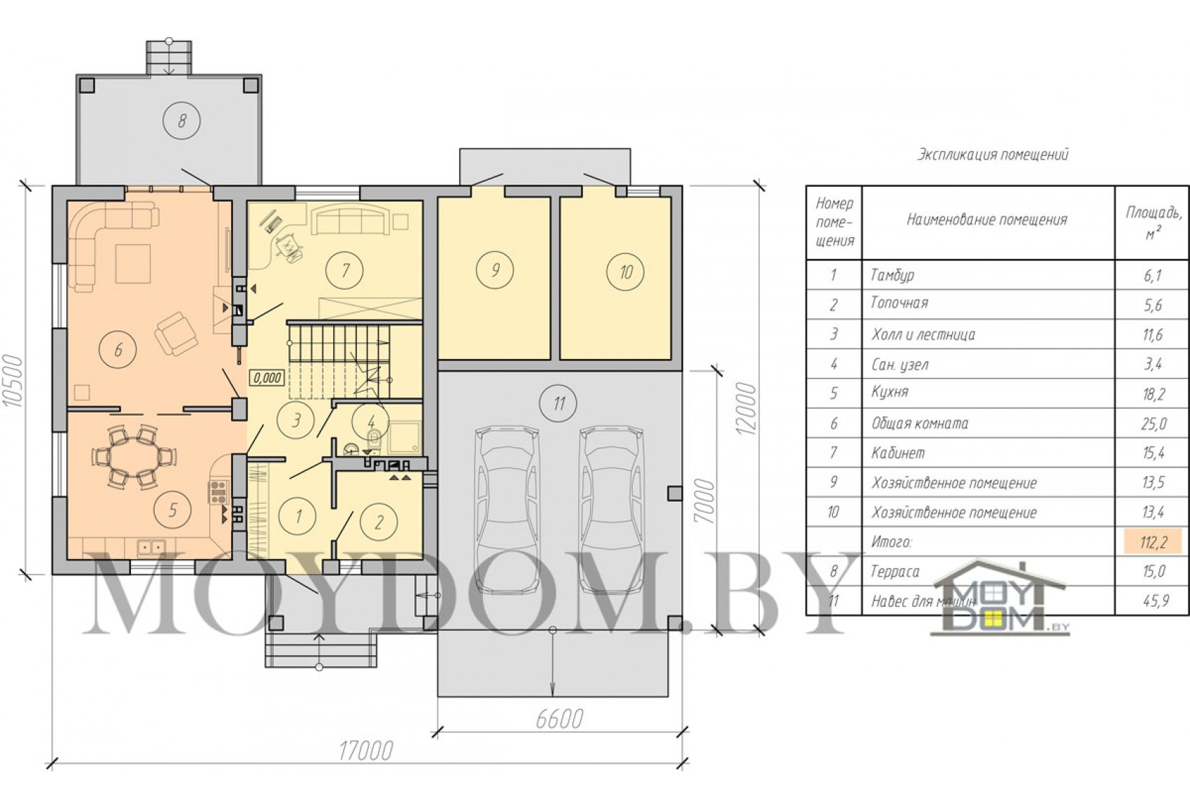 Один из самых лучших и популярных проектов дома с навесом на две машины из простых и недорогих двухэтажных домов. Высота потолка 3 метра, окна все по 1,75 м. Все последние современные конструктивные решения в этом проекте.