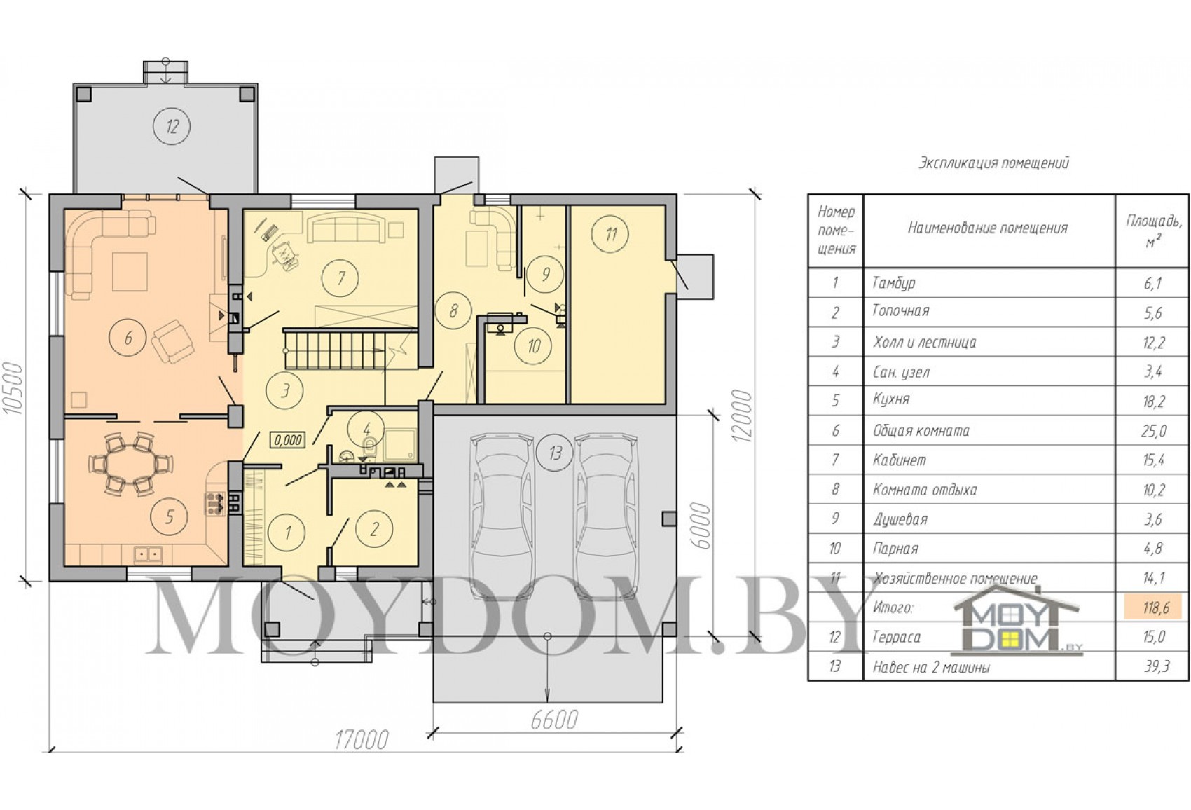 Общая площадь, м.кв. 205,0 дом + 39,3 навес для машины