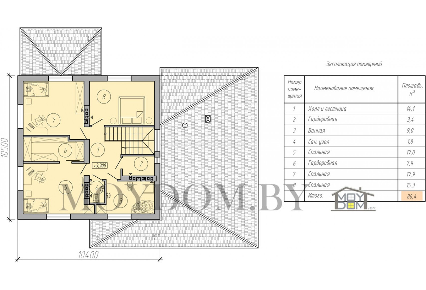 Теги: Серия проектов домов 423, 3 спальни, 4 комнаты, 10 на 10, квадратный, от 150 до 250 кв.м., с 4-х скатной кровлей, с террасой, с навесом для машины, классический, с гардеробом, с кабинетом, с сауной, с парной, с баней, с хозпомещением.