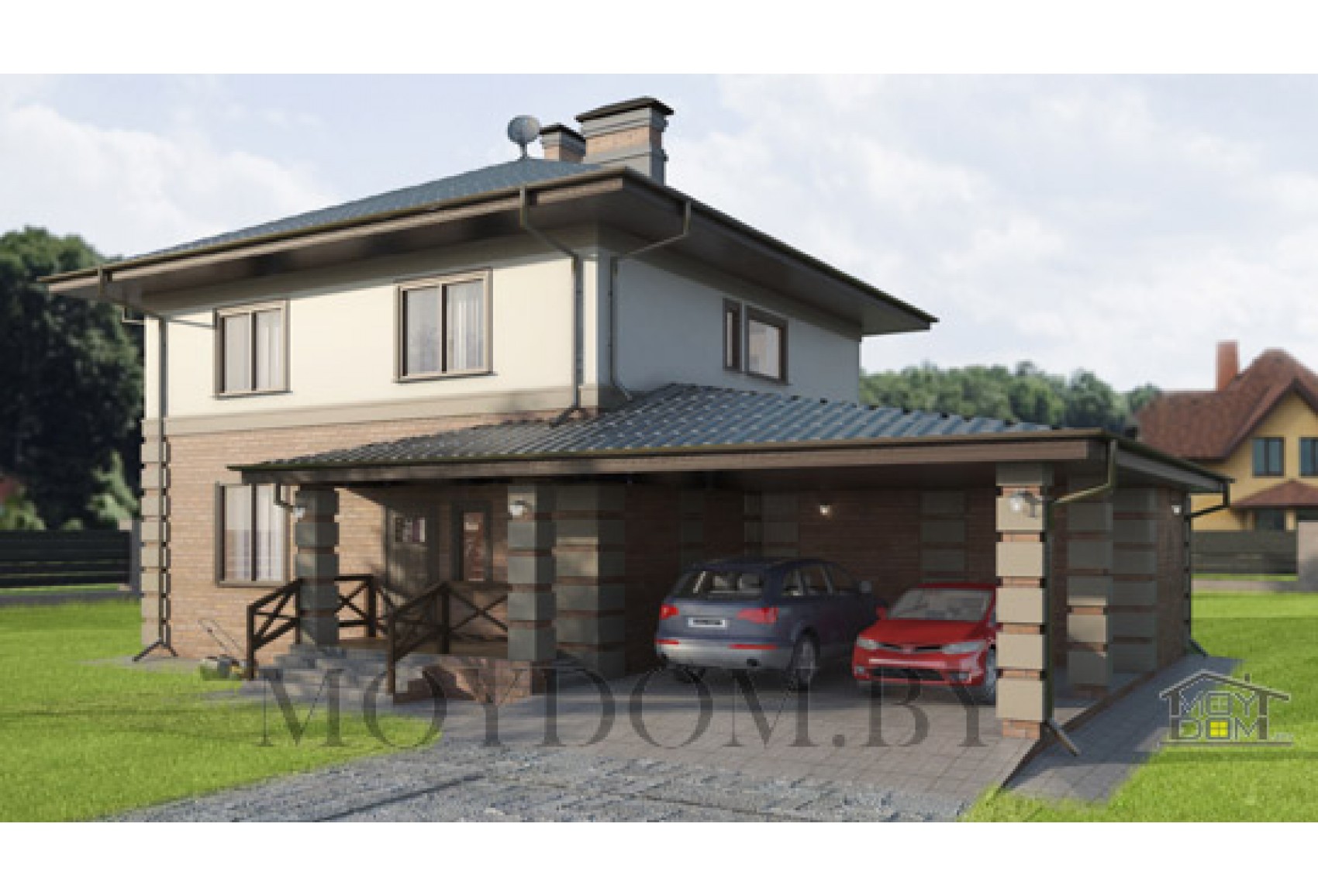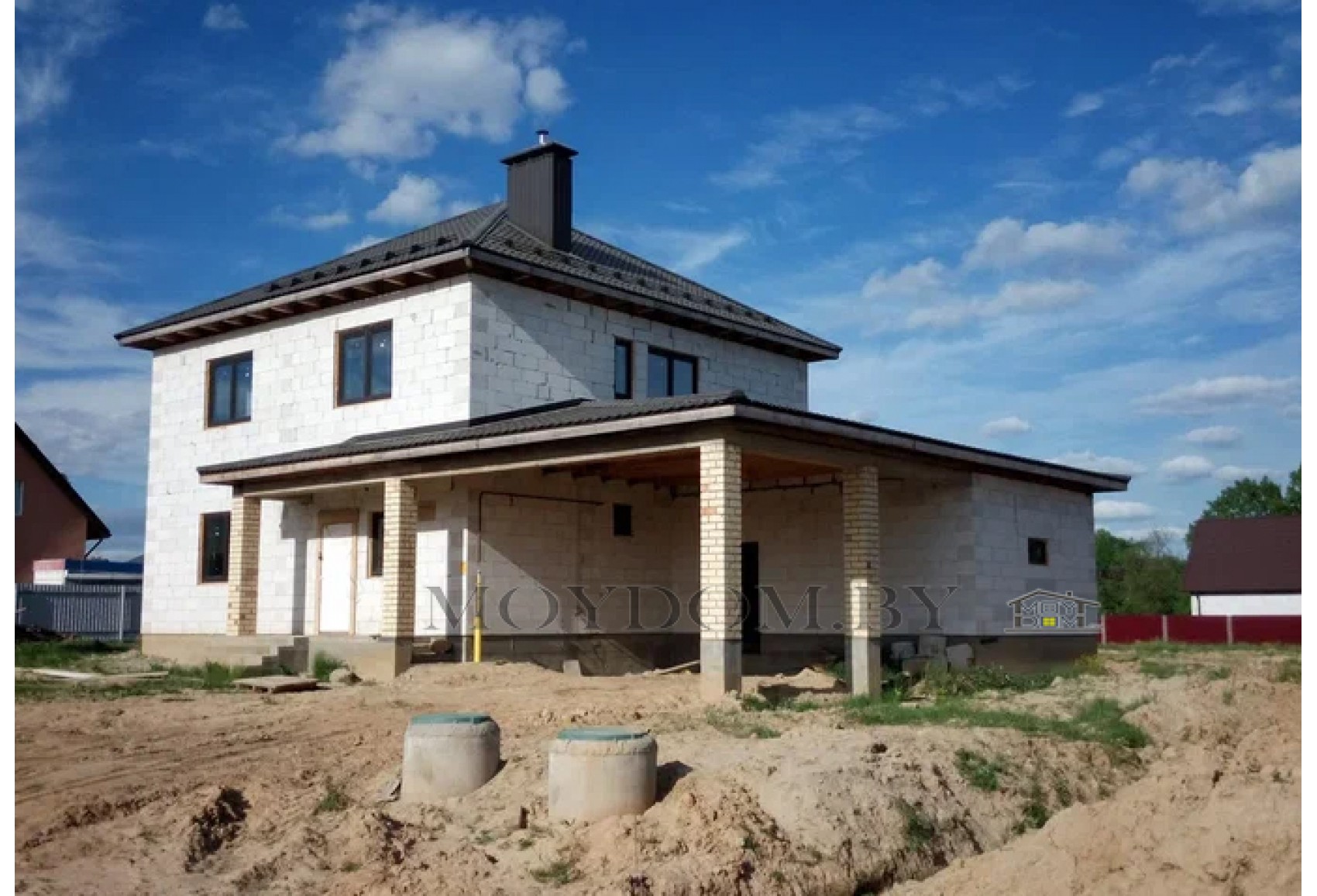 Один из самых лучших проектов современного дома из простых и недорогих двухэтажных домов. Высота потолка 3 метра, окна все по 1,75 м. Все последние современные конструктивные решения в этом проекте.