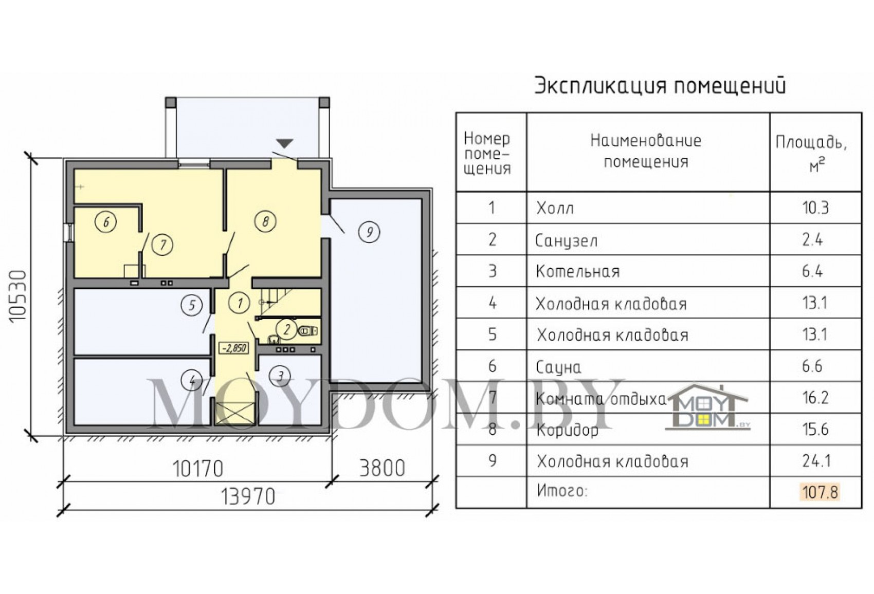 Проект одноэтажного дома с цокольным этажом и сауной