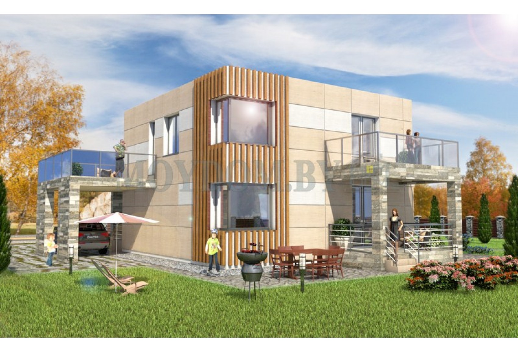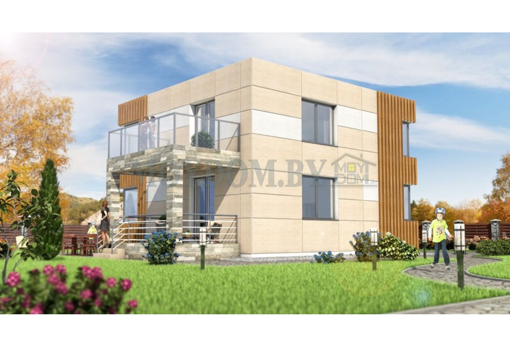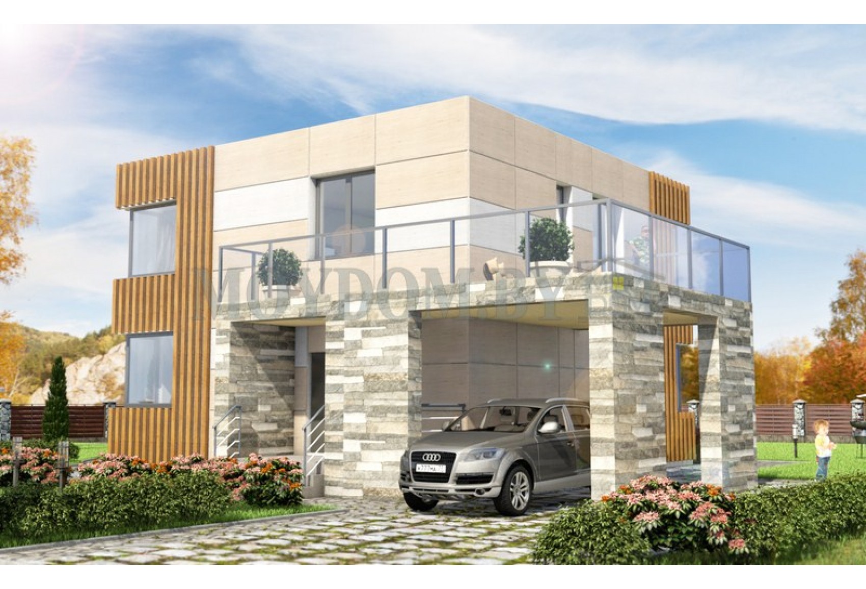 Проект дома с балконом и плоской крышей