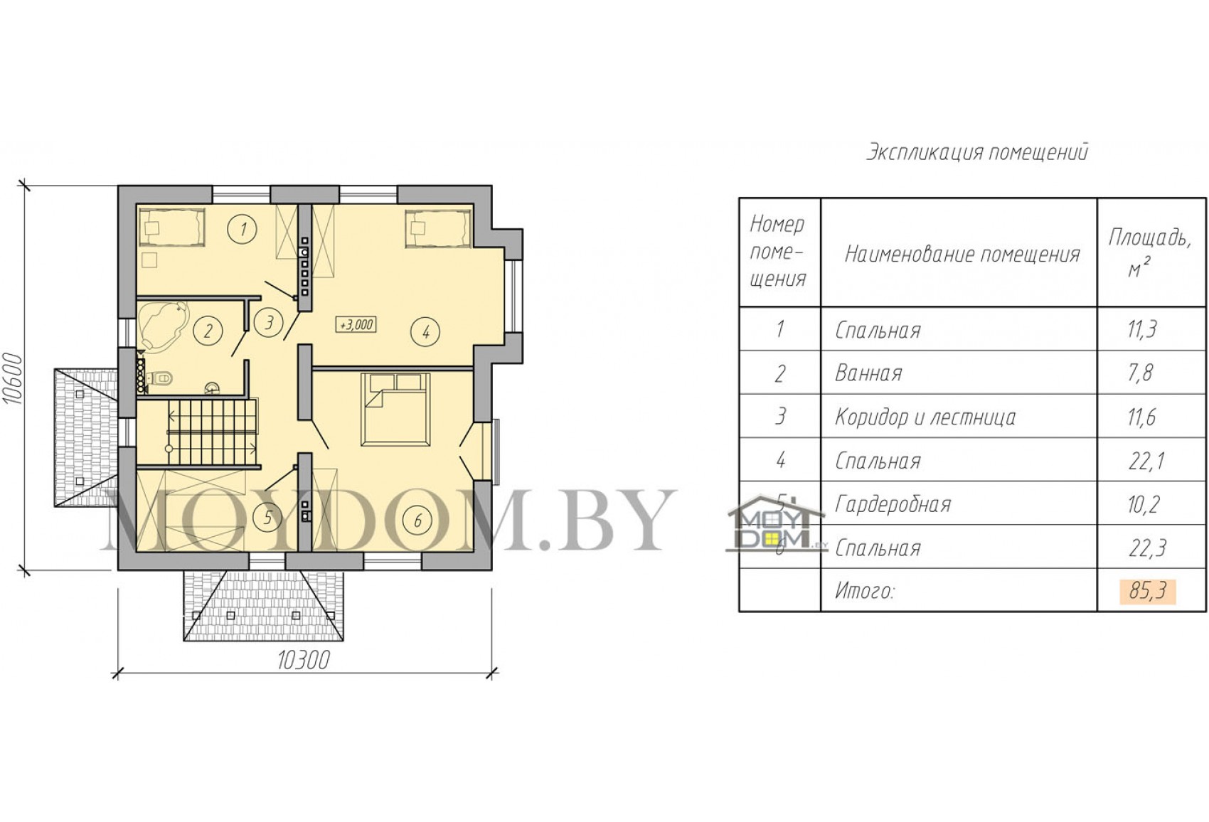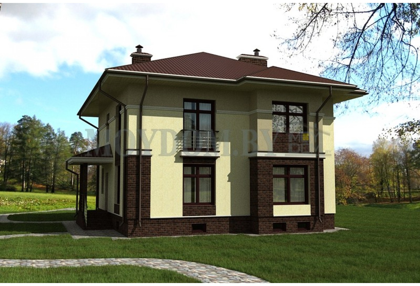 Теги: 10 на 10, от 250 кв.м., 3 спальни, 4 спальни, с 4-х скатной кровлей, с эркером, с подвалом, с террасой, с гардеробной, недорогой, бюджетный, с хозпомещением, с французским балконом.