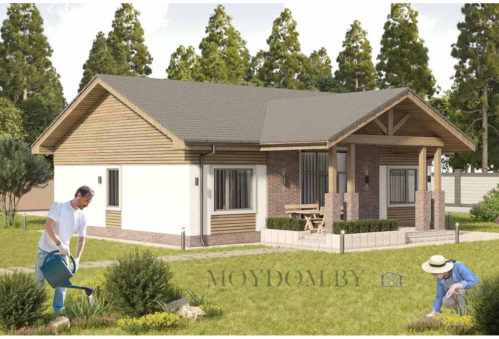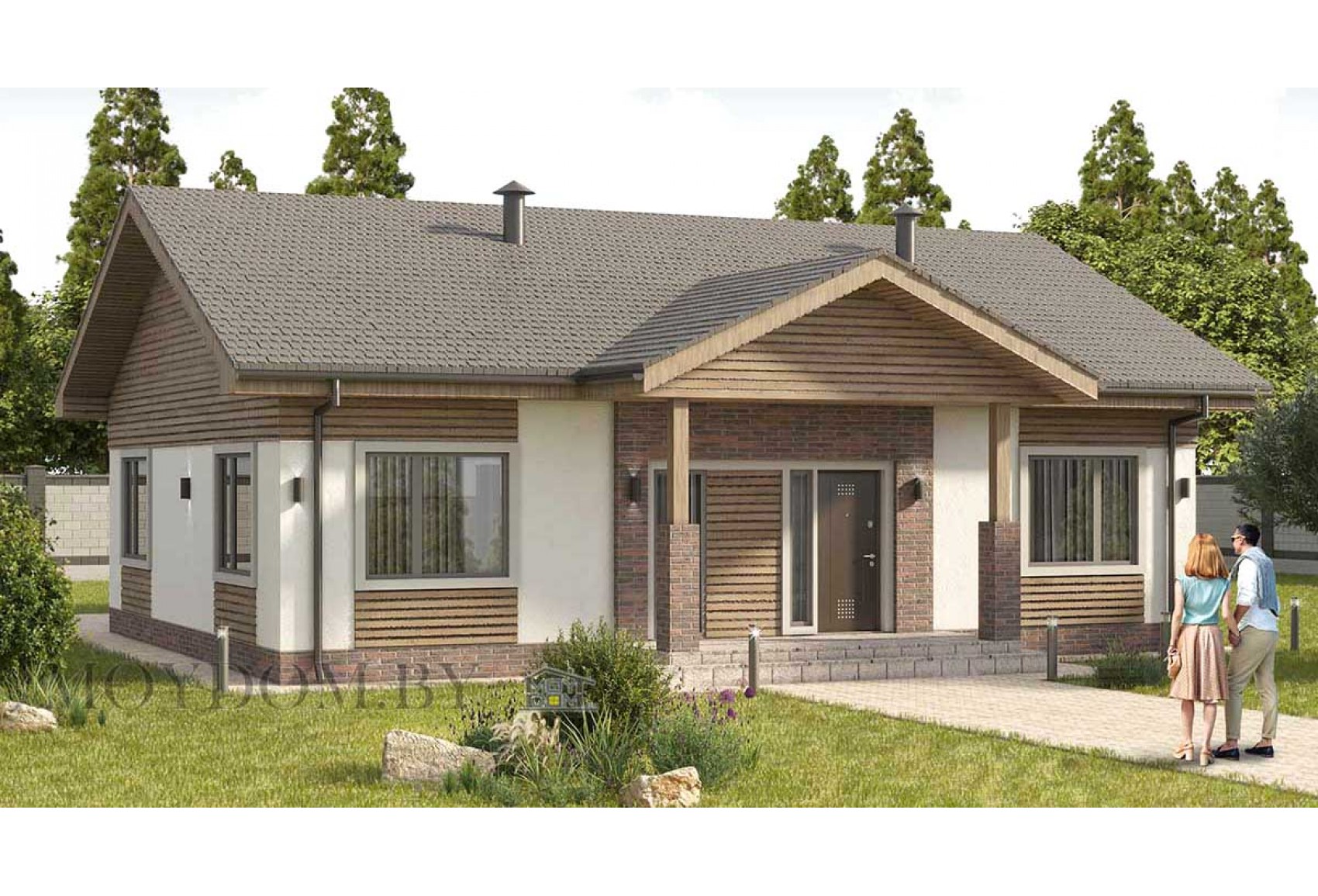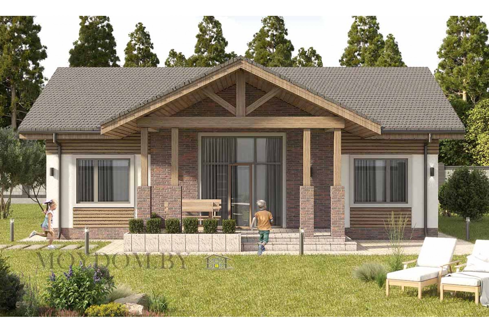 Одноэтажный дом с двускатной крышей и вторым светом