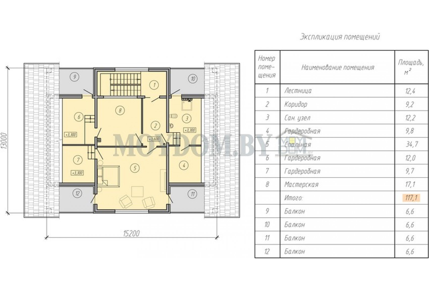 Теги: 12 на 15, от 250 м.кв., 2 спальни, 4 комнаты, с террасой, с баней, с сауной, с балконом, с подвалом, с мастерской, с мансардой, с кладовой, с парной, с гардеробной