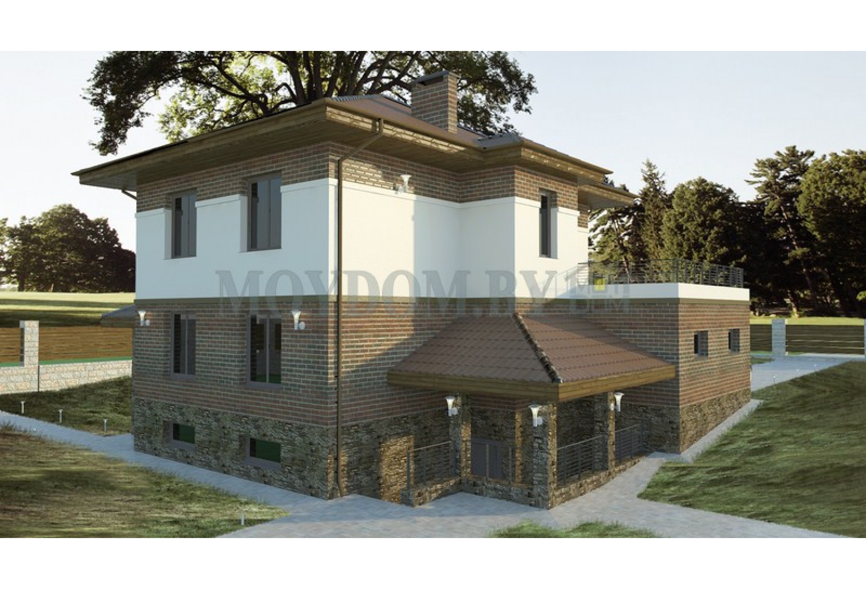 Дом выполнен в классическом стиле, который подойдет для большой семьи, ведущей активный образ жизни. Специально создан для неровных участков, что позволяет его естесственным продолжением ландшафта.