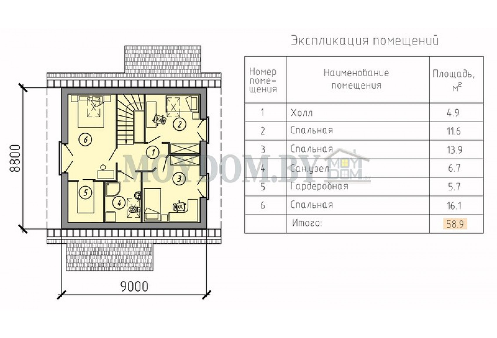 Теги: 4 спальни, 9 на 9, от 80 до 150 кв.м., квадратный, дачный, небольшой, недорогой, с мансардой, с гардеробной,