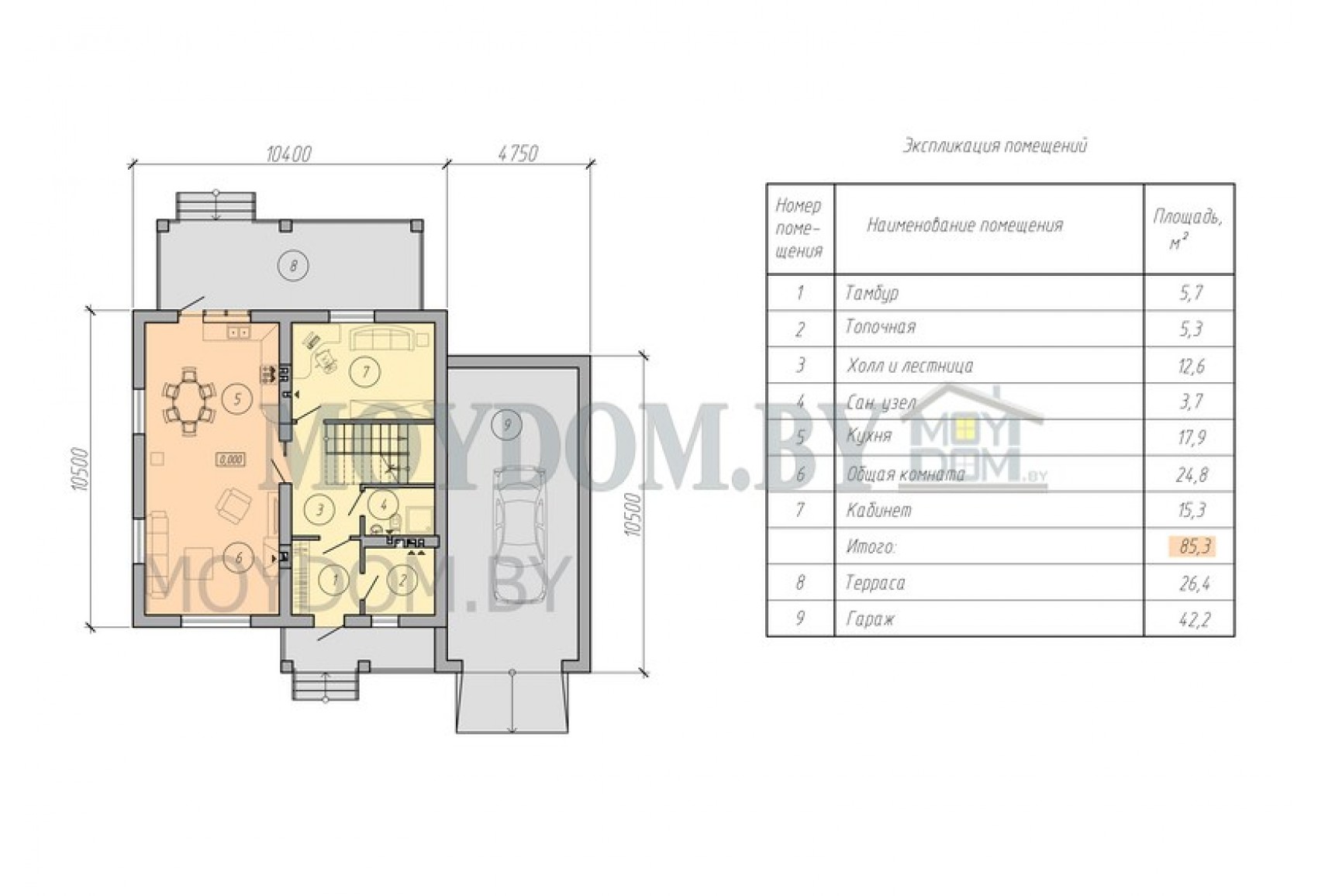 | Общая площадь, м.кв. | 171,6 дом + 42,2 гараж |