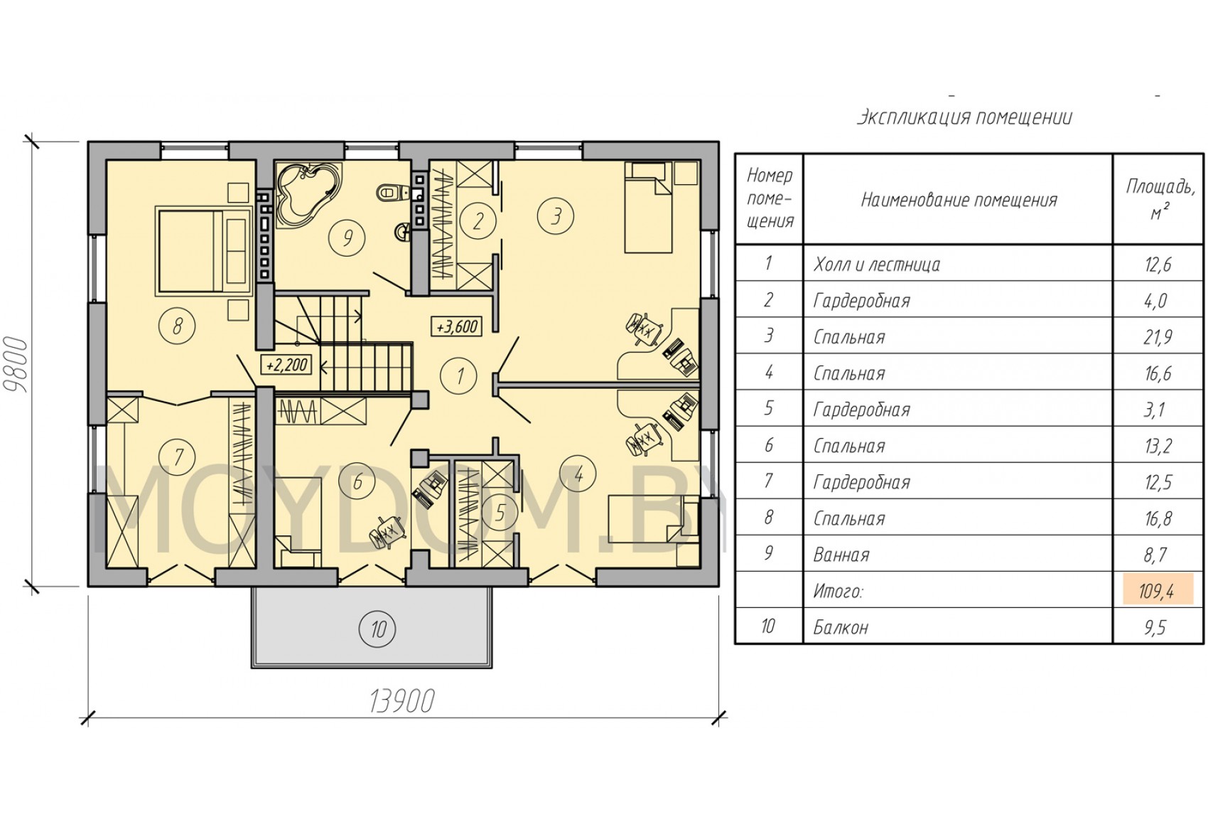Теги: 10 на 14, от 150 до 250 кв.м., с двускатной кровлей, 4 спальни, с гаражом, в средиземноморском стиле, с гардеробной, с постирочной, с хозпомещением, с террасой, с балконом, с панорамными окнами