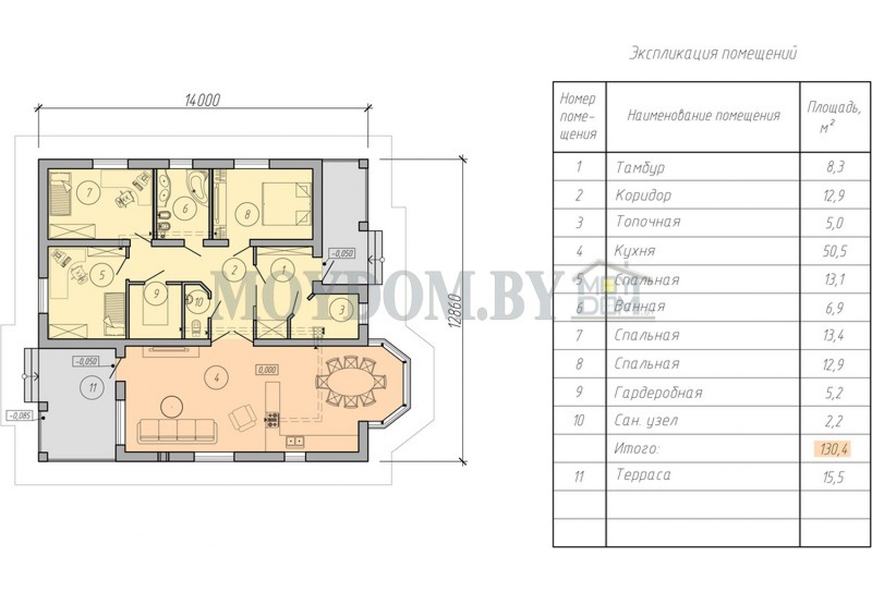 | Общая площадь, м.кв. | 130,4 |