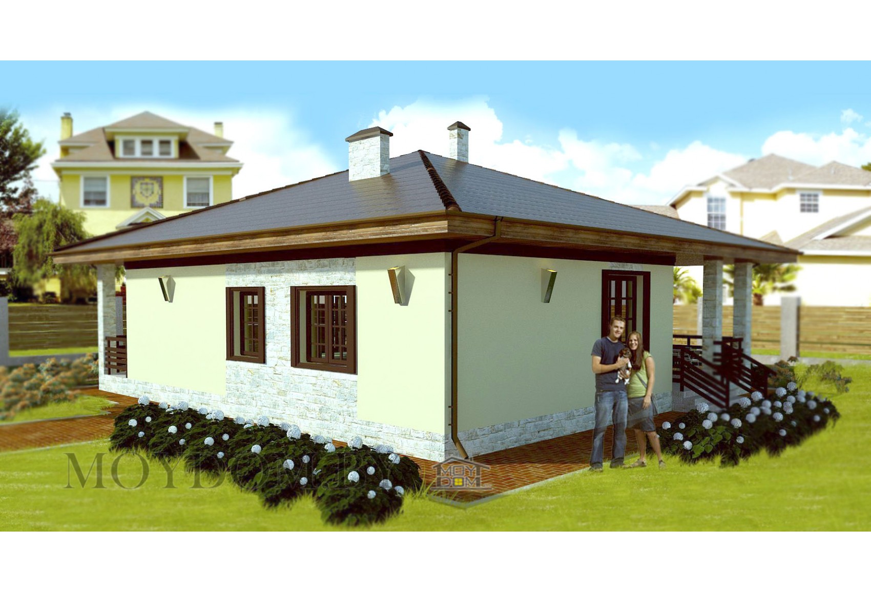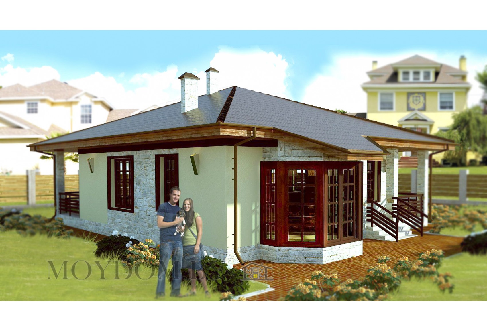 Проект одноэтажного дома с эркером 48