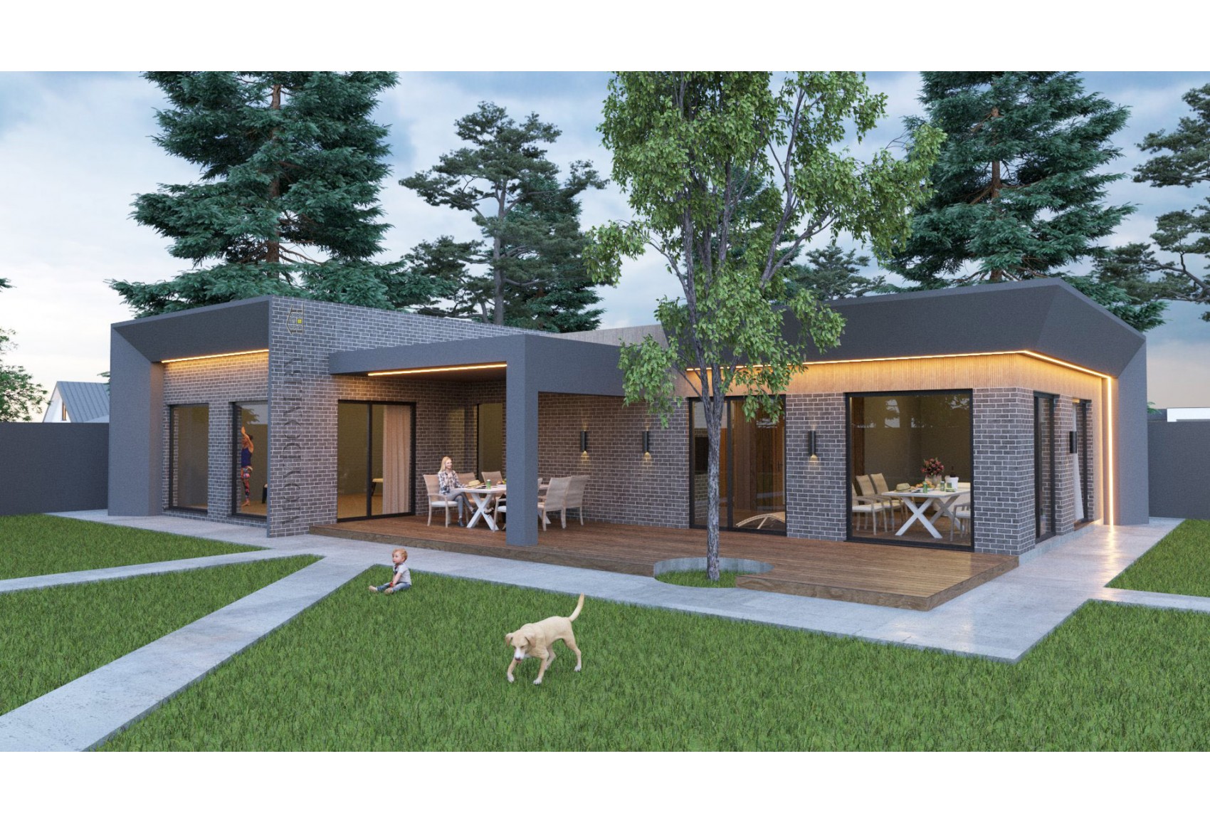 фото современного одноэтажного дома 12 на 18 с баней и хамамом