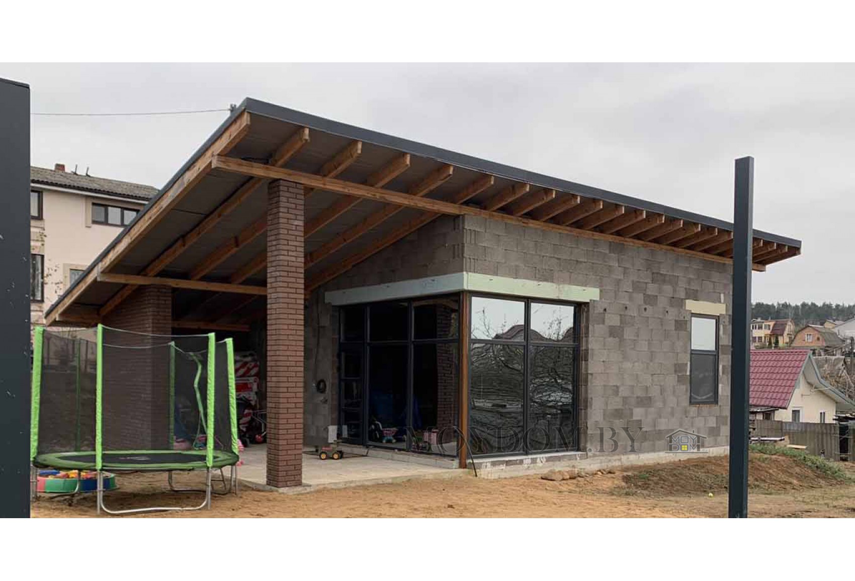 фото стройки дома-бани с односкатной кровлей