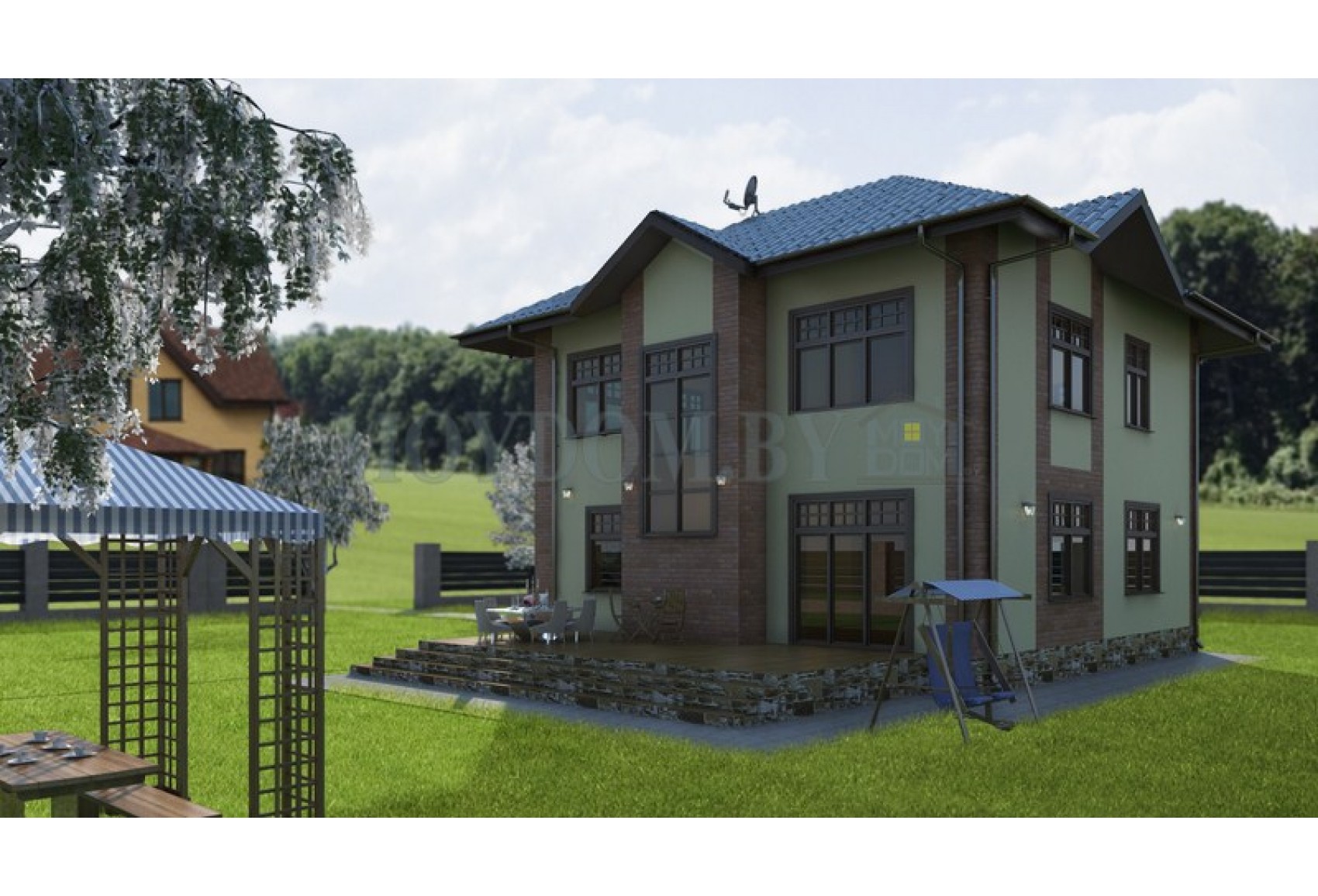 Представляем проект двухэтажного дома с двумя террасами 160 м.кв. Большая крытая терраса надежно защищена крышей от палящего солнца, а если захочется понежиться у солнца, но рядом с домом, то для этого случая предусмотрена и открытая терраса с другой стороны дома. Проект универсален и подойдет большой семье для постоянной жизни. Этот дом 11 на 11 предусматривает достаточную для комфортной жизни жилую площадь, включая также подсобные помещения и санузлы. Дом смотрится лаконично, но при этом очень современно и красиво, гармонично вписываясь в окружающий природный ландшафт. Дом можно отнести к категории “проект дома 150 кв”.