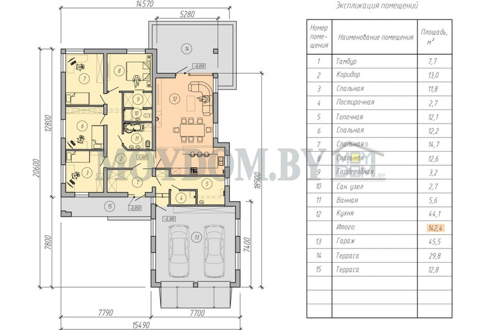 | Общая площадь, м.кв. | 142,4 дом + 45,5 гараж |