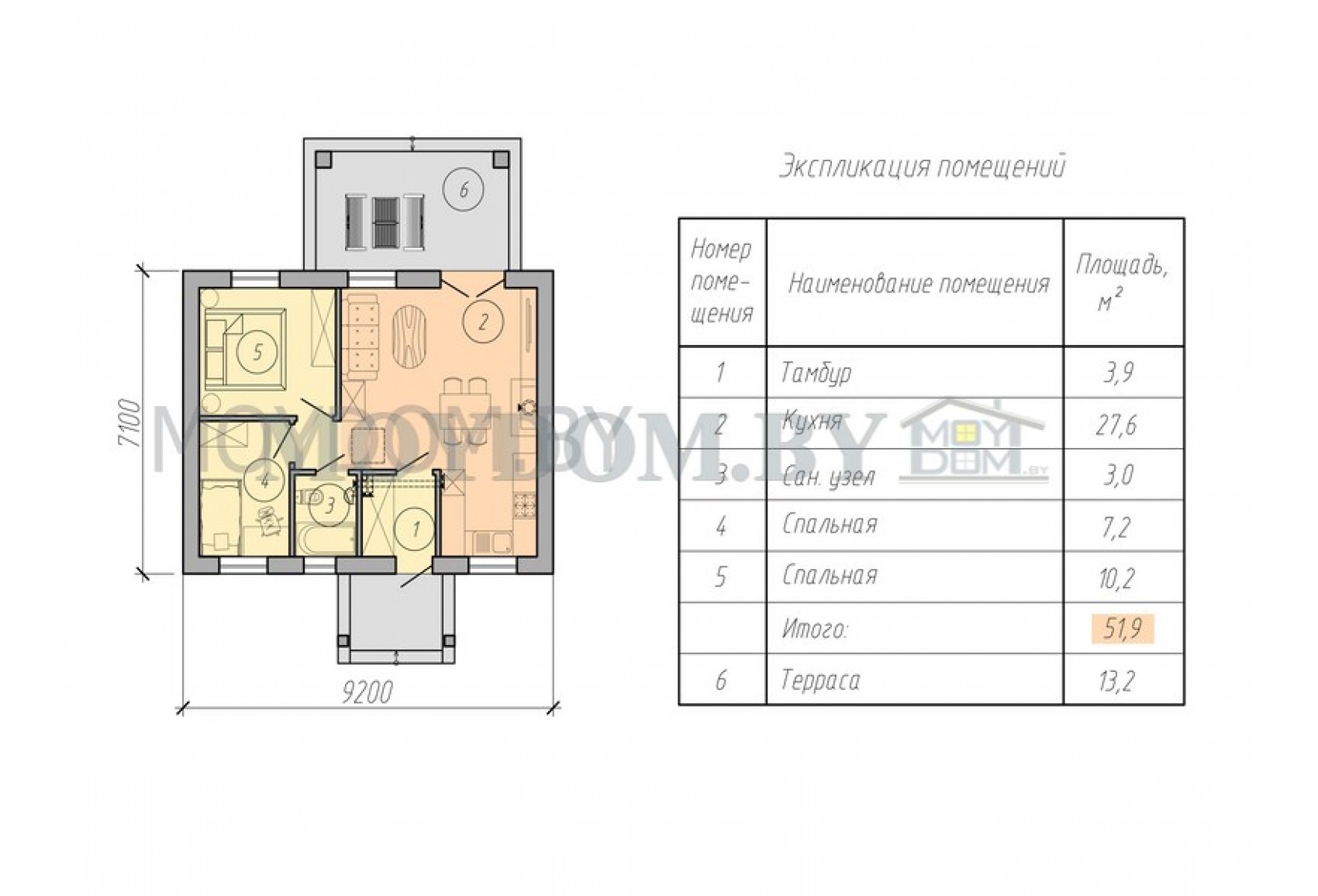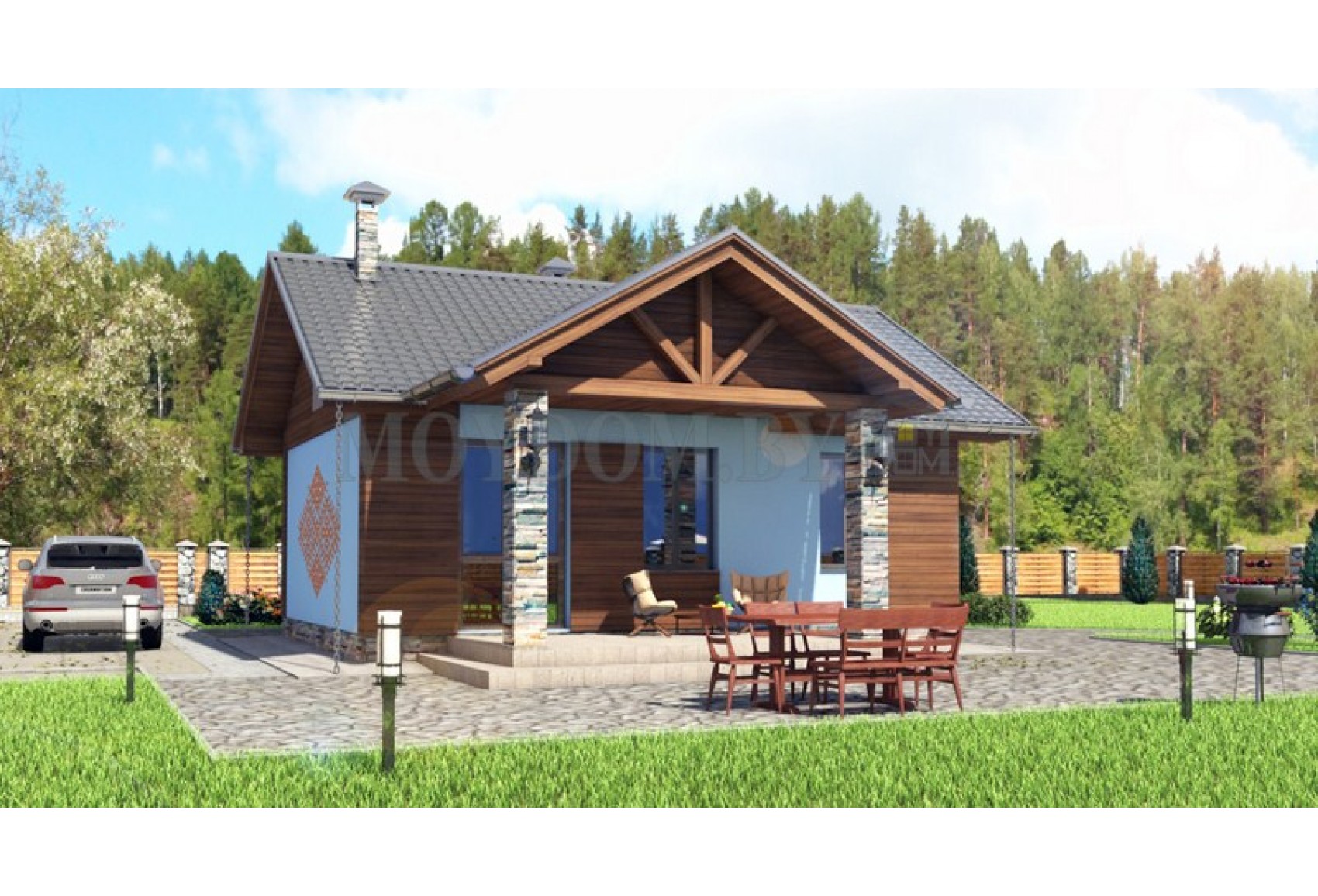 Теги: 7 на 9, до 100 кв.м., 2 спальни, с двускатной кровлей, эконом, бюджетный, с террасой, дачный, гостевой, небольшой, недорогой, аналог Z11