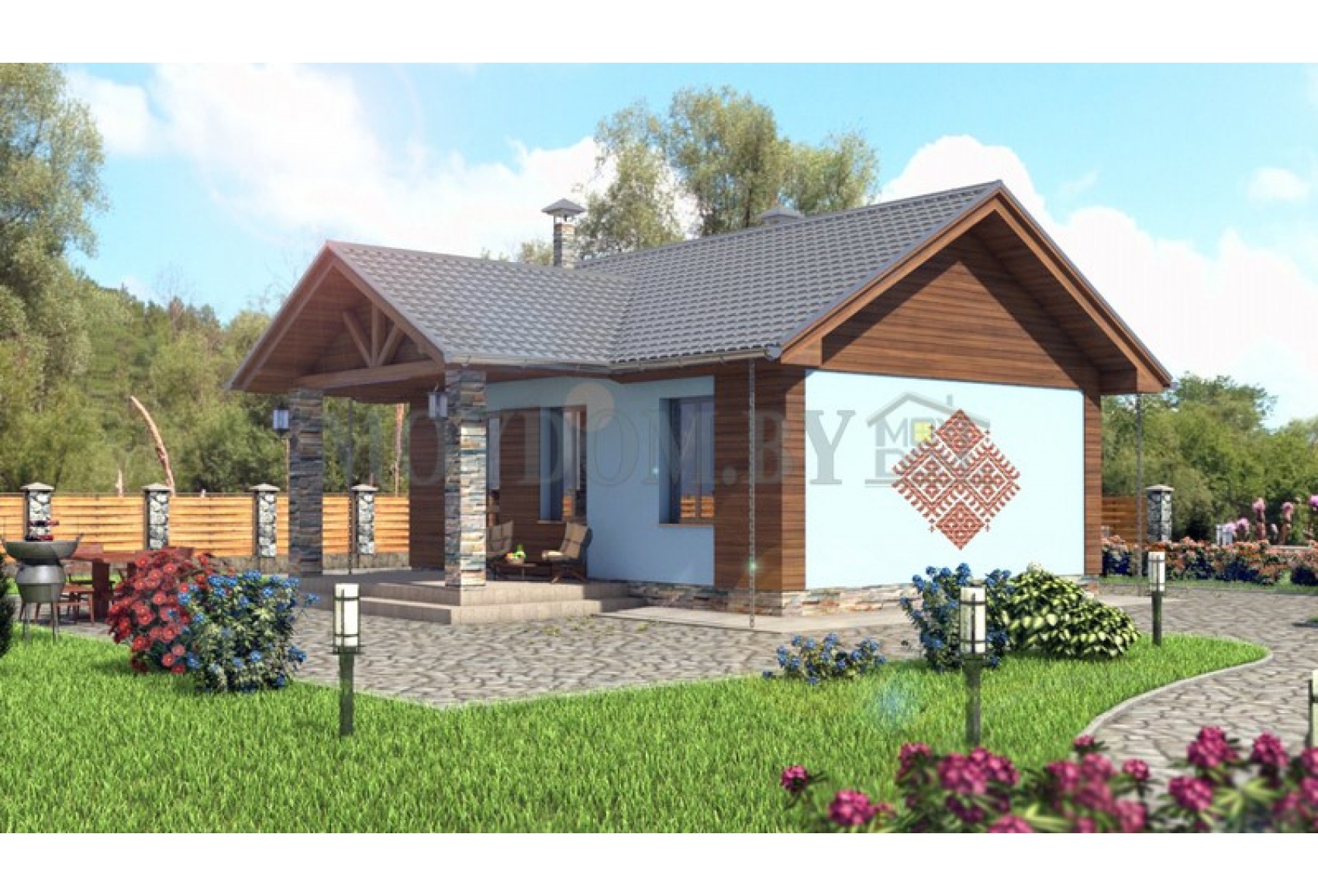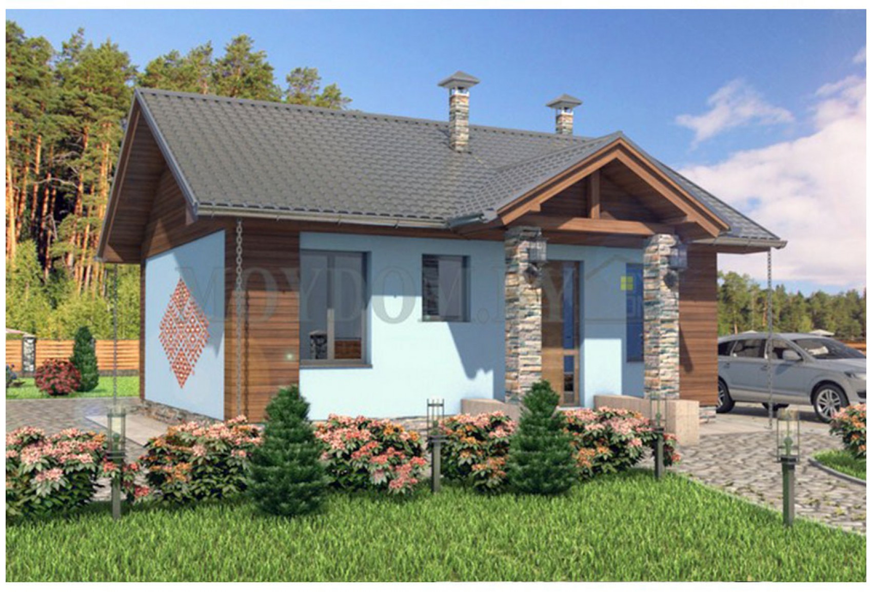 Отличный проект одноэтажного дачного дома на 50 м.кв. для комфортной жизни небольшой современной семьи. Одноэтажный дом включает в себя две жилые комнаты, кухню, гостиную, санузел, топочную. Из кухни есть выход на достаточно просторную террасу. Если вы хотите быстро и недорого построить небольшой дом, то этот проект одноэтажного дома создан специально для вас. Такой дом подходит как для сезонного проживания, дачи, так и для постоянного проживания. Проект коттеджа подходит для небольшого состава семьи, к примеру, двое взрослых и один ребёнок, а гости, в случае ночёвки, могут расположится на раскладном диване в гостиной. Проект одноэтажного дома разработан с учетом все строительных норм и правил. Проект подходит как для круглогодичного проживания, так и для дачи.