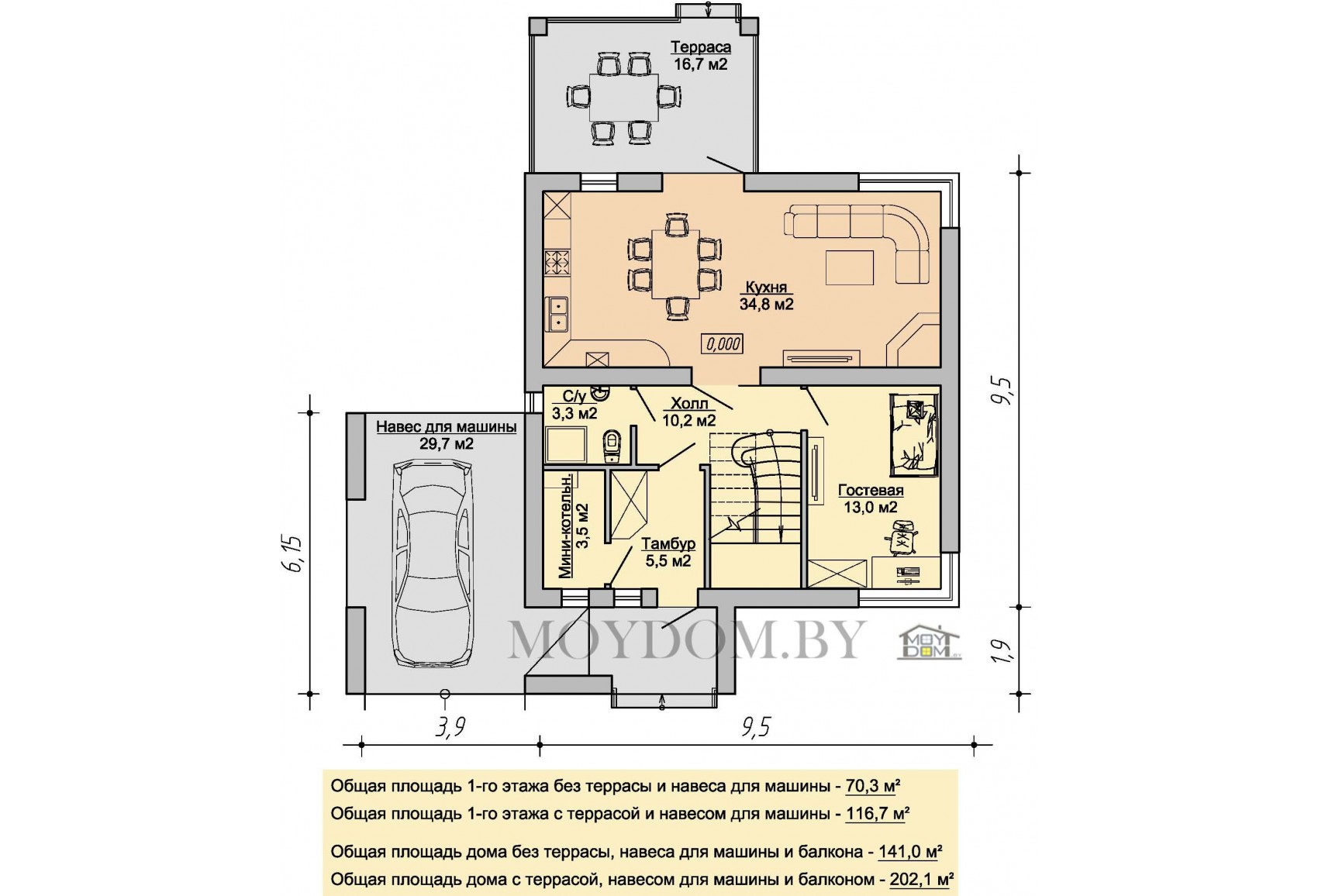 Общая площадь, м.кв. 140.9 дом + 29,7 навес для машины