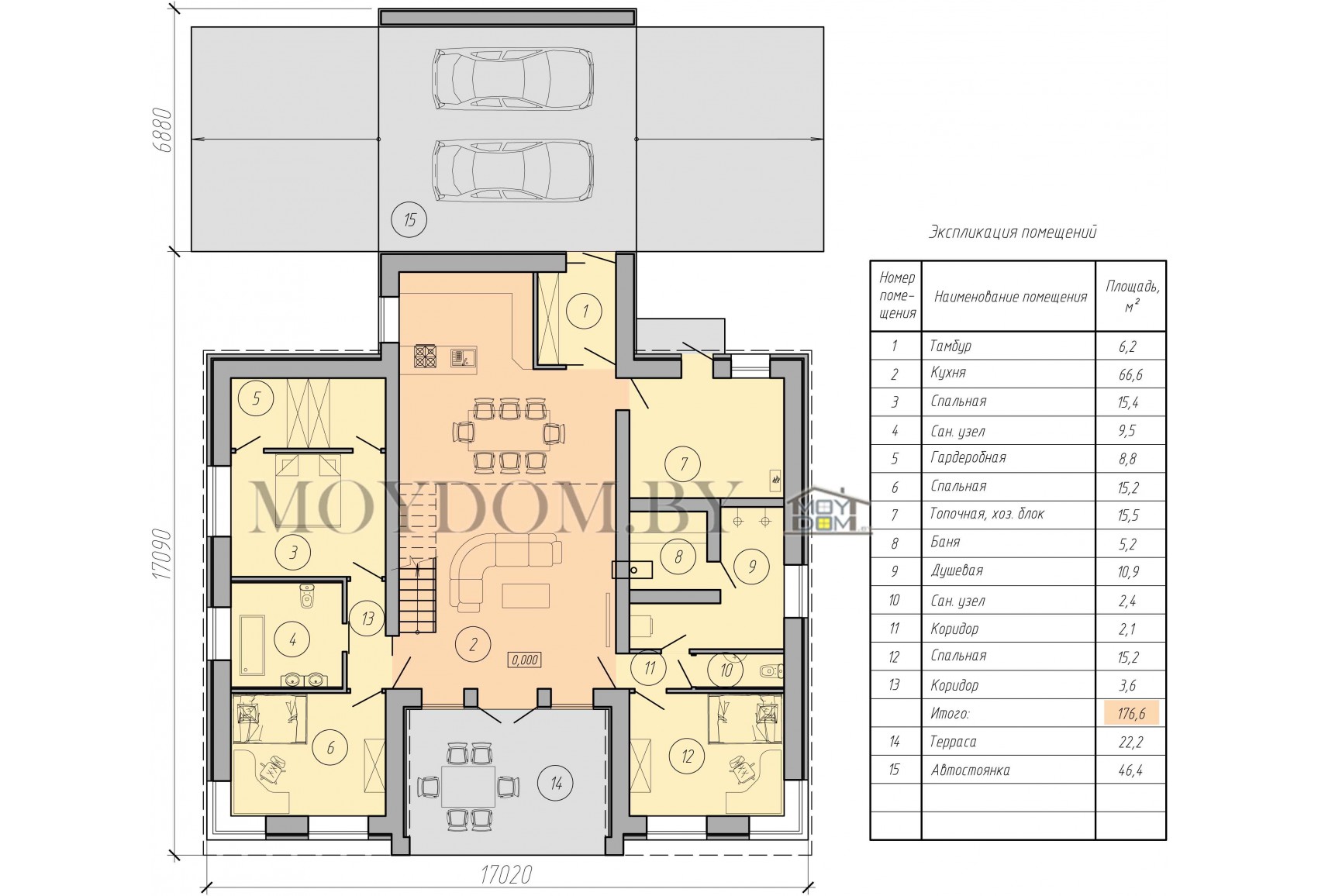 Общая площадь, м.кв. | 308,9 дом + 46,4 автостоянка на 2 машины |