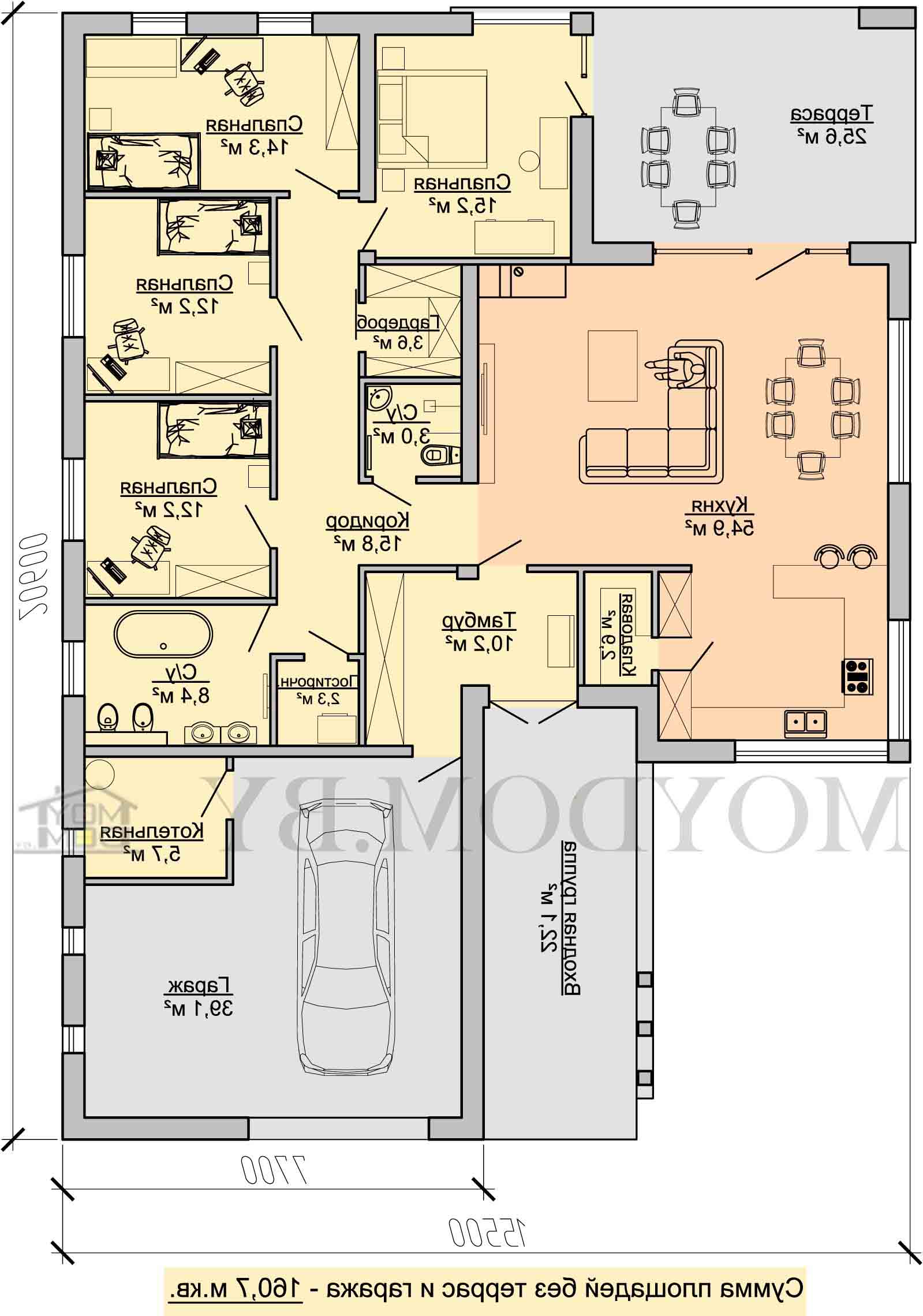 Проект одноэтажного дома с 4 спальнями 160 м.кв.